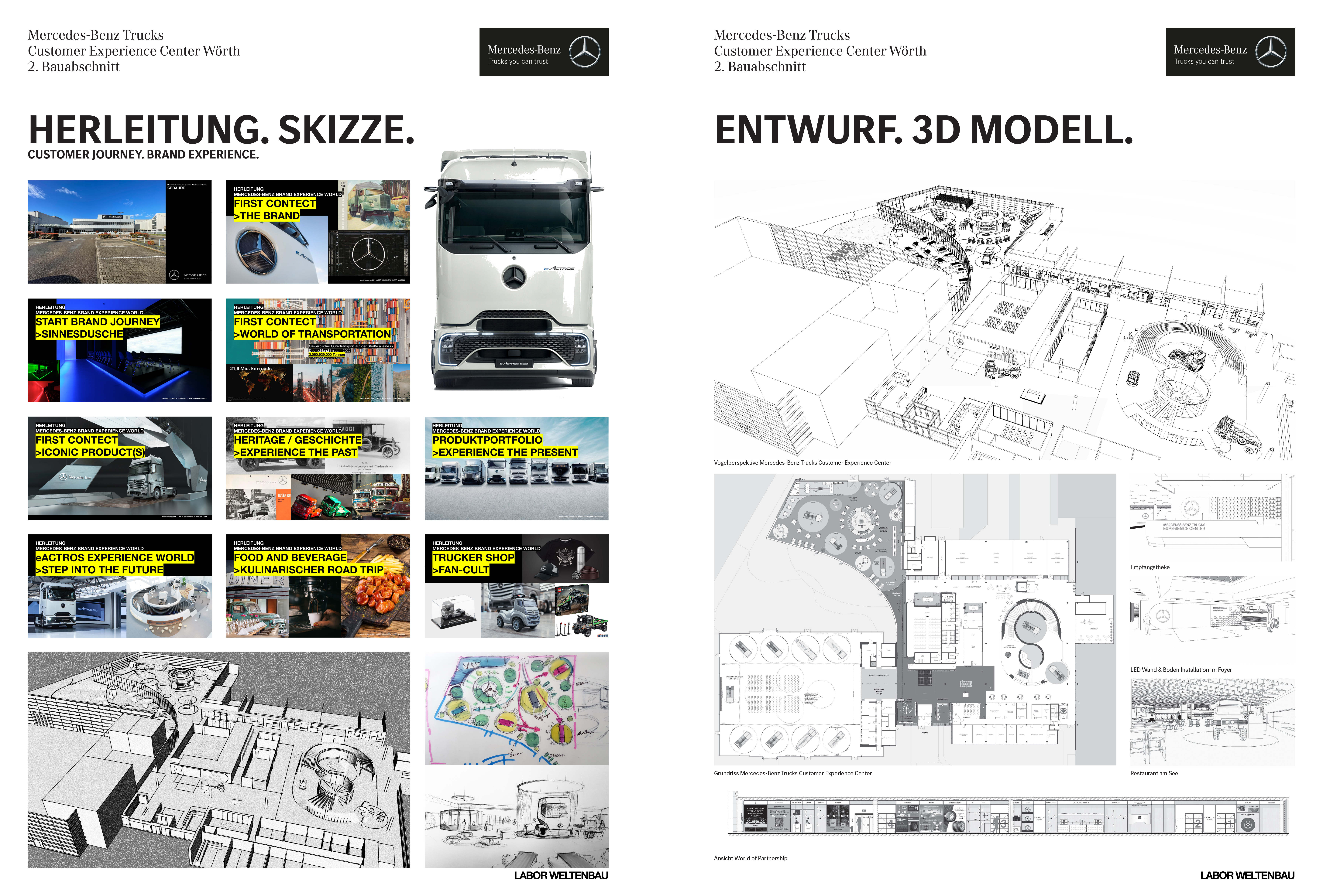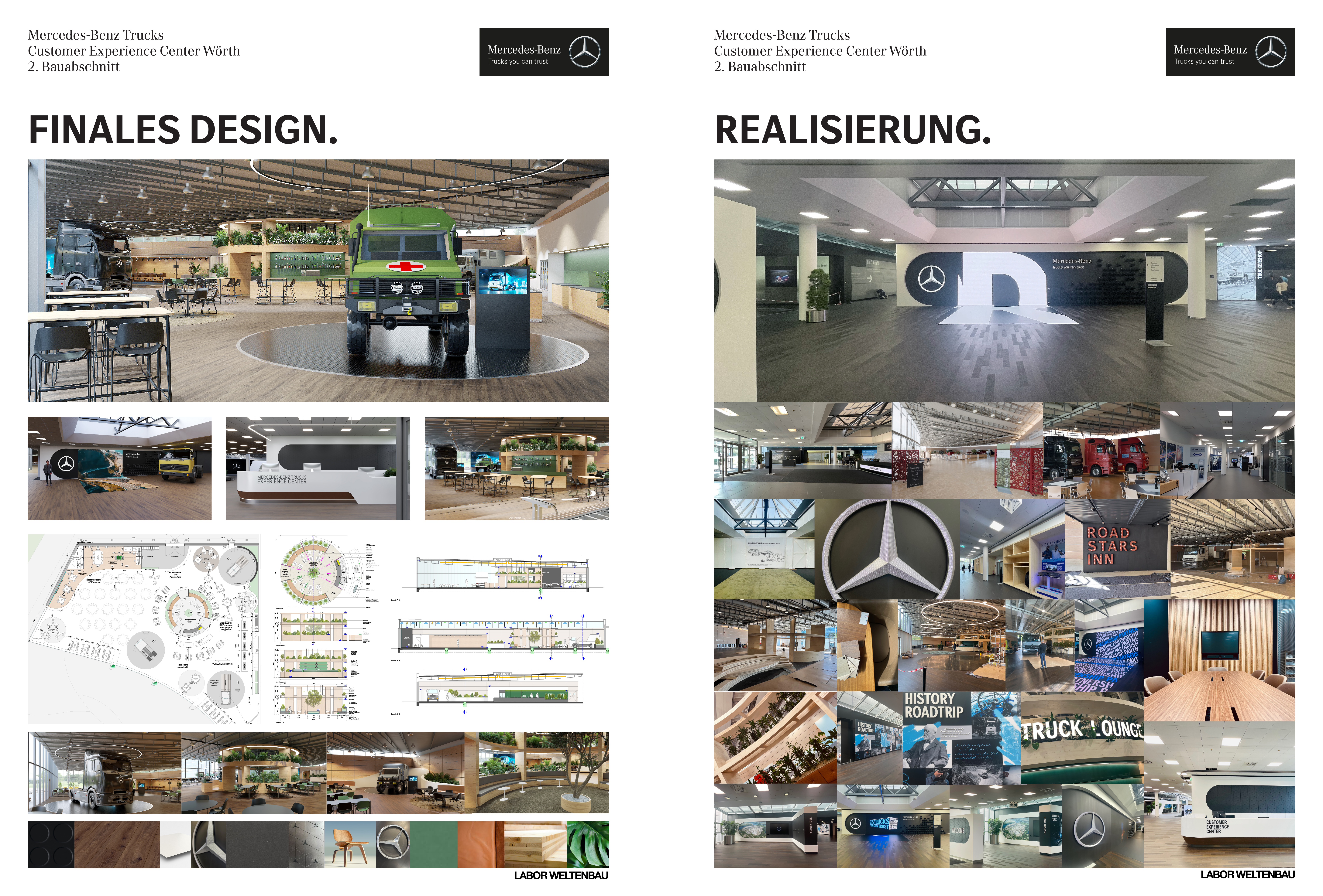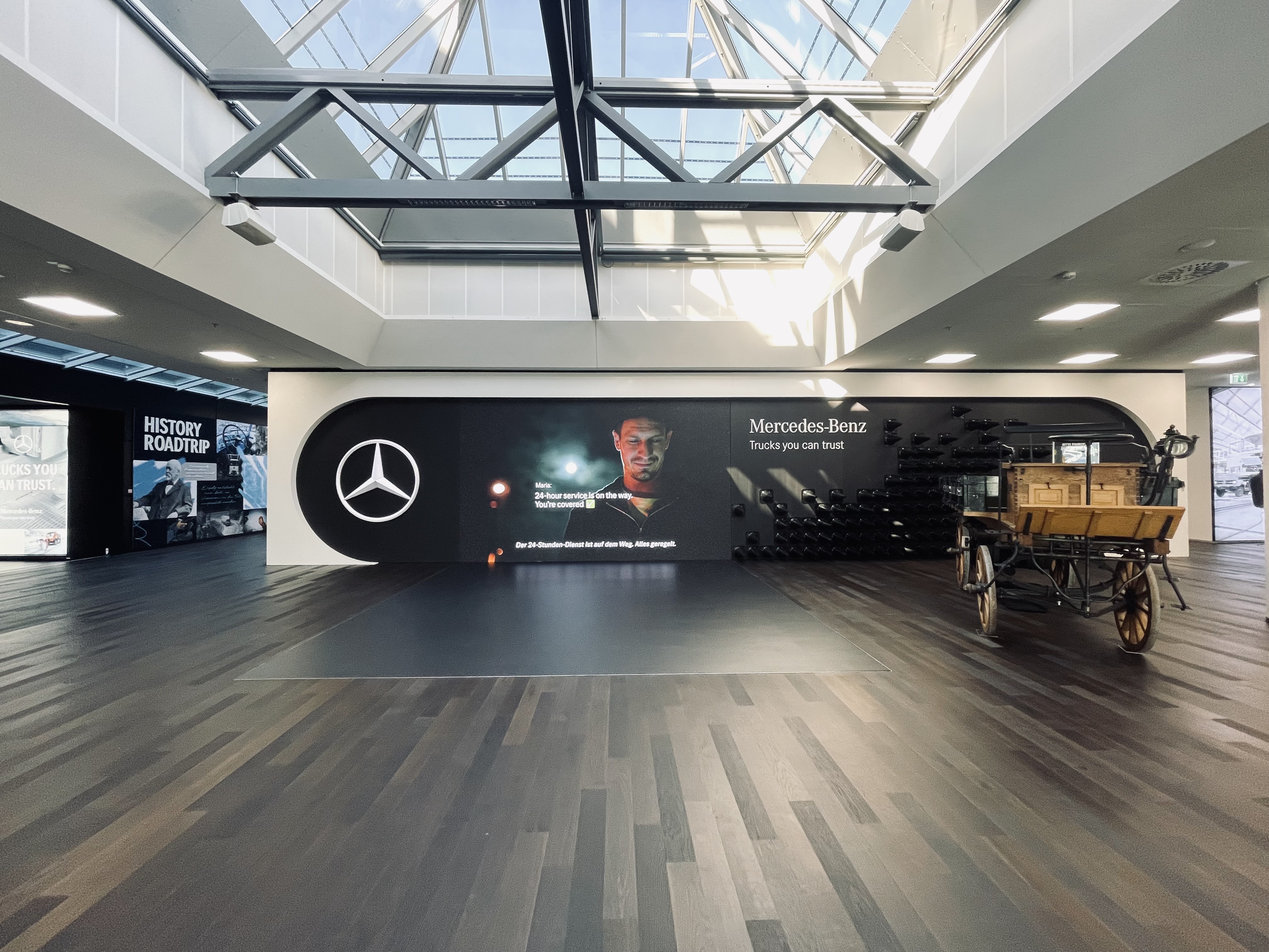 Mercedes-Benz Trucks has completely revamped its existing customer center and redesigned it as a “Customer Experience Center” (CEC). The aim is to focus even more strongly on customers and bring the brand and products to life. After just three months of planning, the renovation project got underway while the center remained open for business. Within around five months, a total of 14 different trades carried out all the construction work, from new flooring to custom-made furniture. The result is a modern space that combines meeting, consulting, and presentation areas. "The new Customer Experience Center reflects our philosophy: We consistently put the customer at the center of everything we do,“ says Jean-Marc Diss, Head of Global Sales & Marketing Mercedes-Benz Trucks. ”Here, we combine our history with a view to the future." With the new Customer Experience Center, Mercedes-Benz Trucks is highlighting its strategic orientation: customer proximity is not only formulated as a guiding principle, but is also implemented in a tangible way in the Customer Experience Center. At the same time, the new center stands for a consistent international brand image based on reliability toward customers and partners, clearly conveying the values of reliability, partnership, and progress.